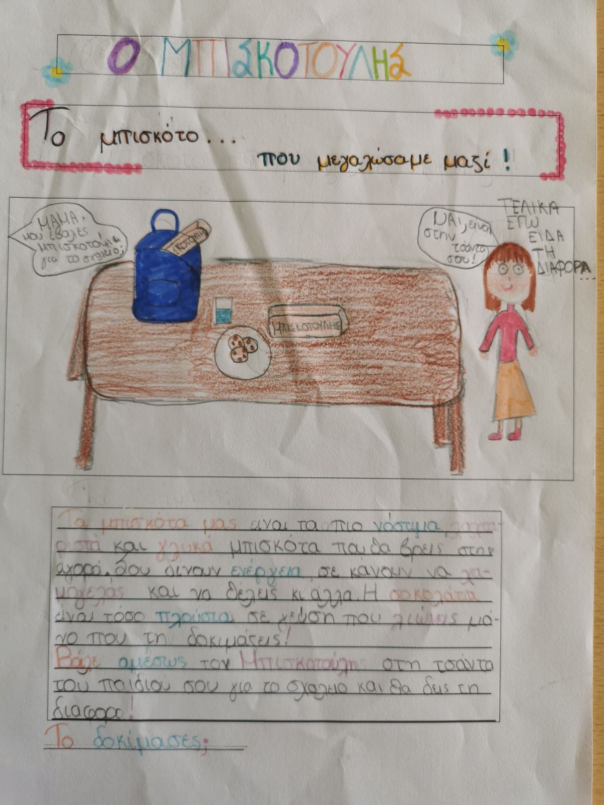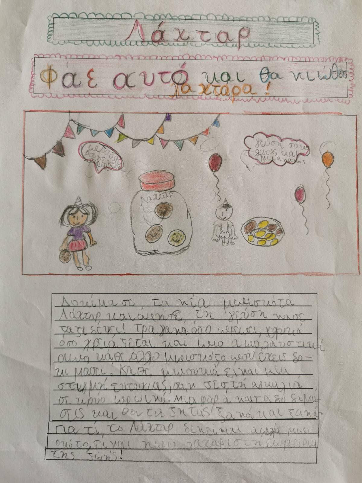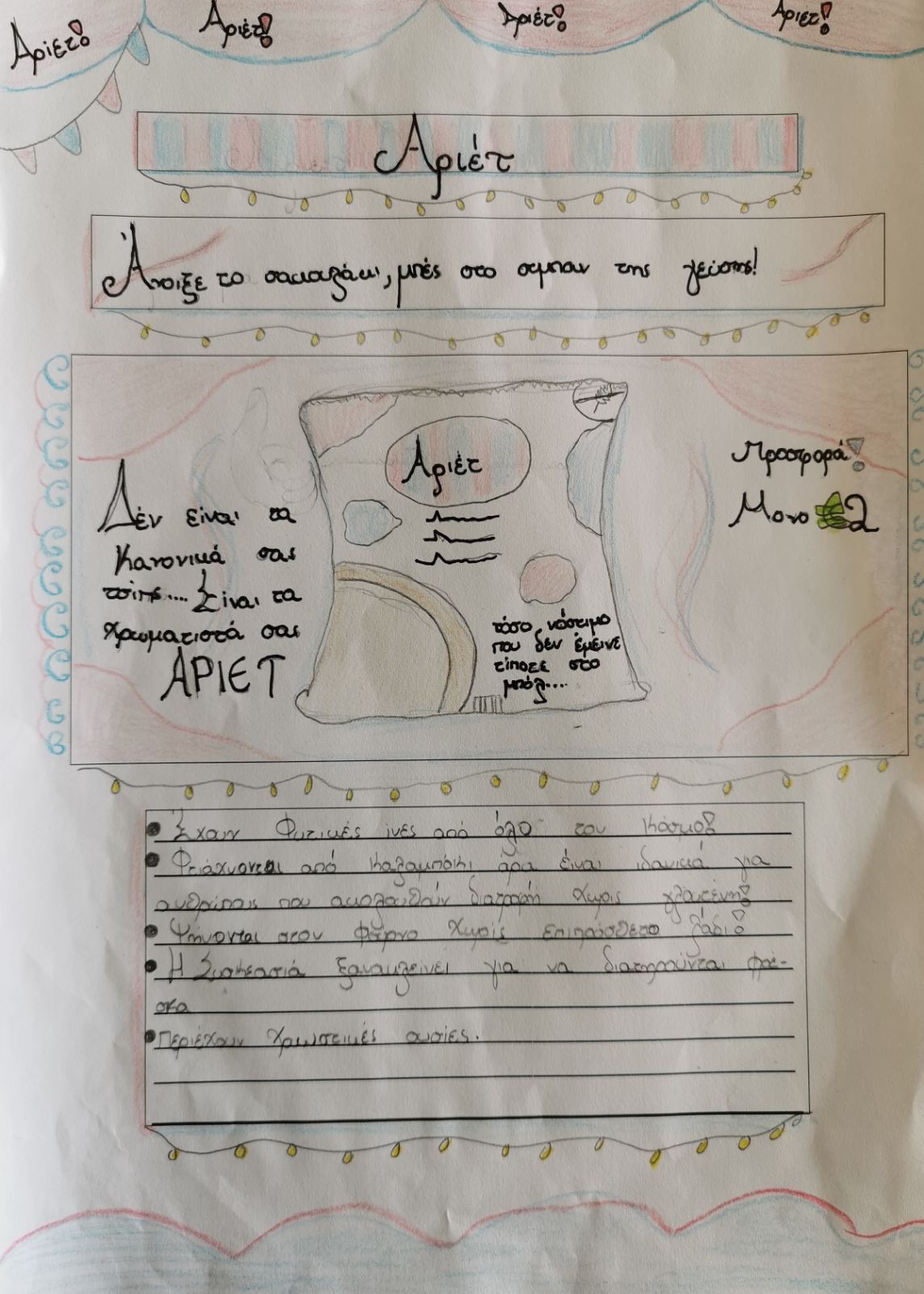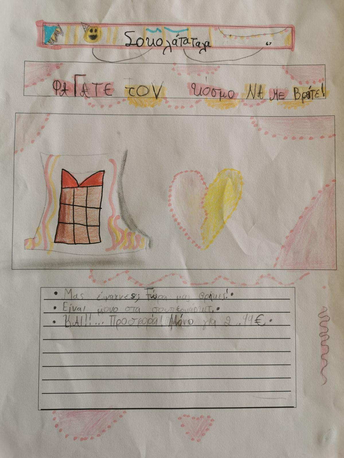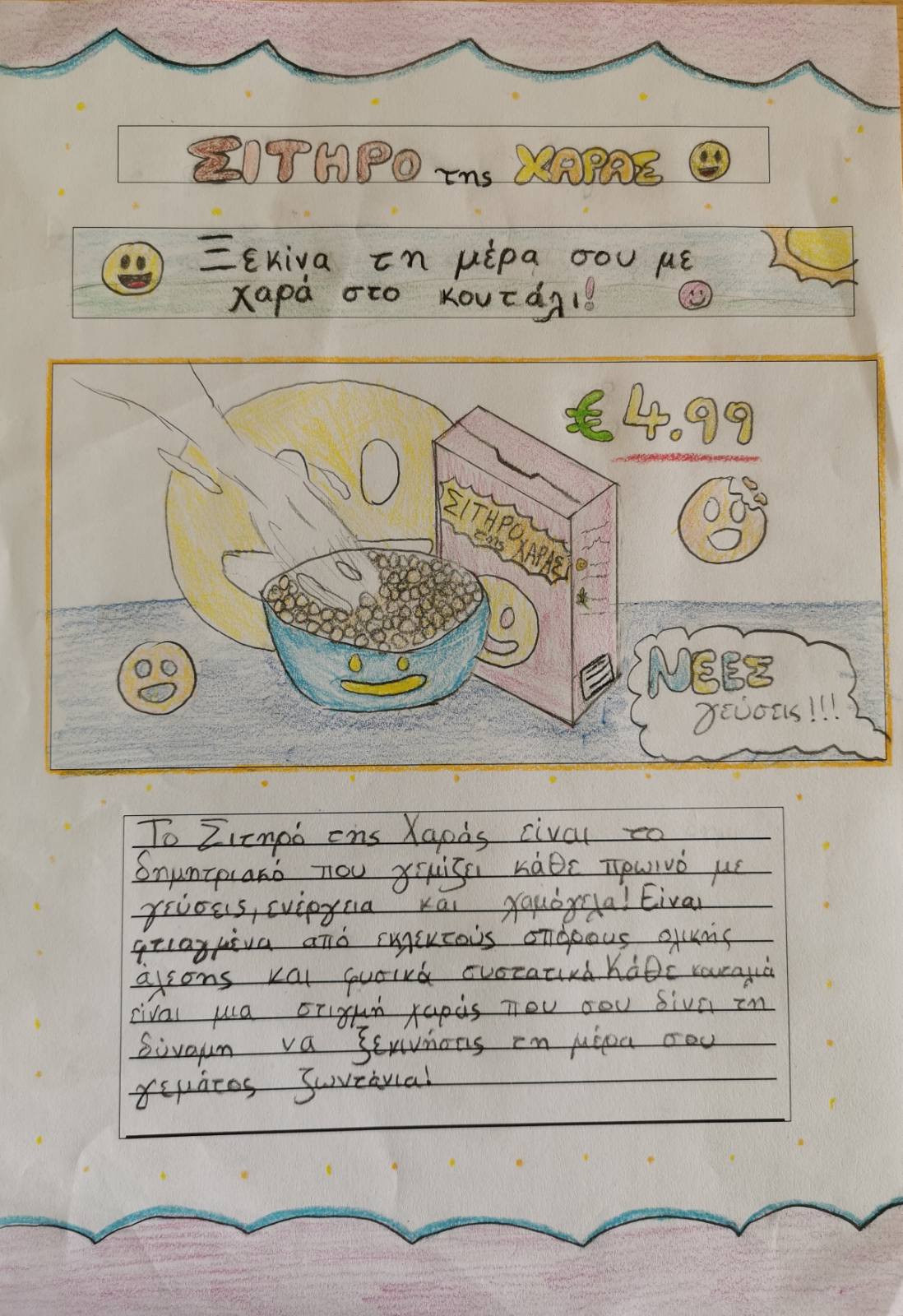 Στο πλαίσιο της ενότητας «Διατροφή» του μαθήματος της Γλώσσας, οι μαθητές και οι μαθήτριες της Στ΄ τάξης εργάστηκαν δημιουργικά και παρουσίασαν τις δικές τους διαφημίσεις.