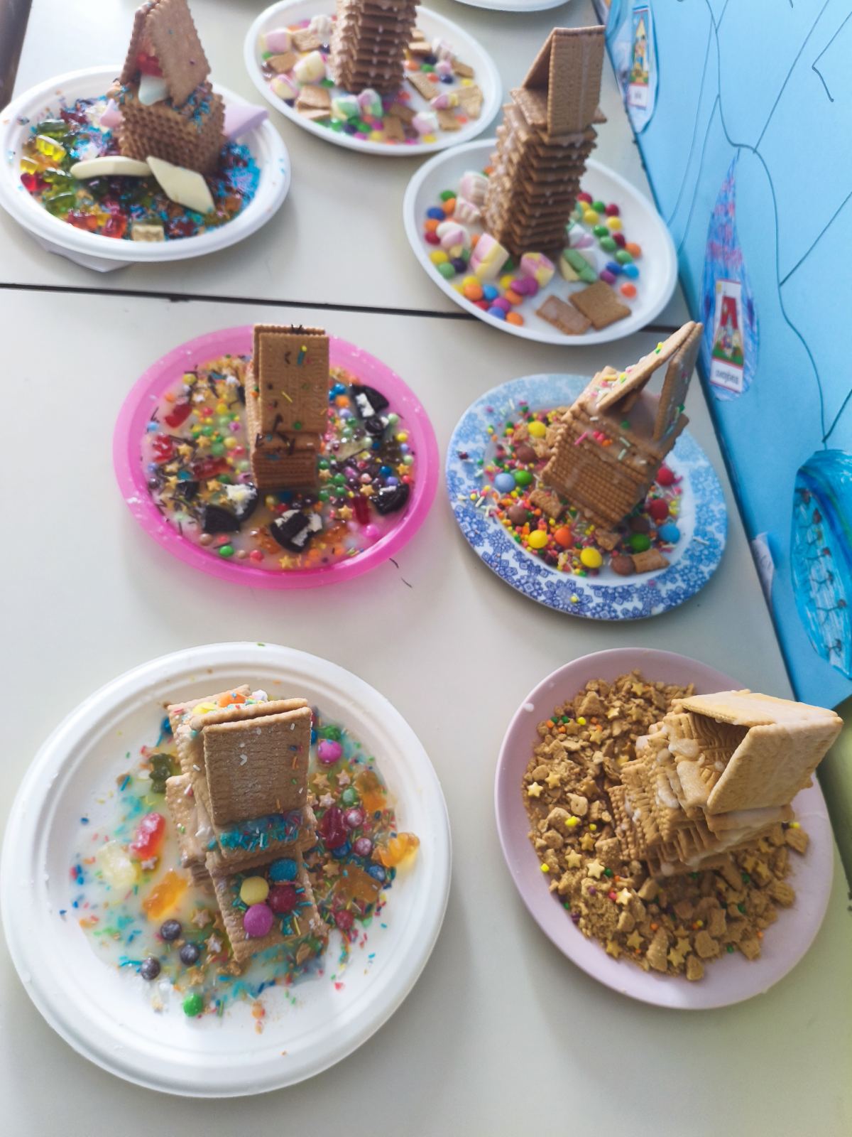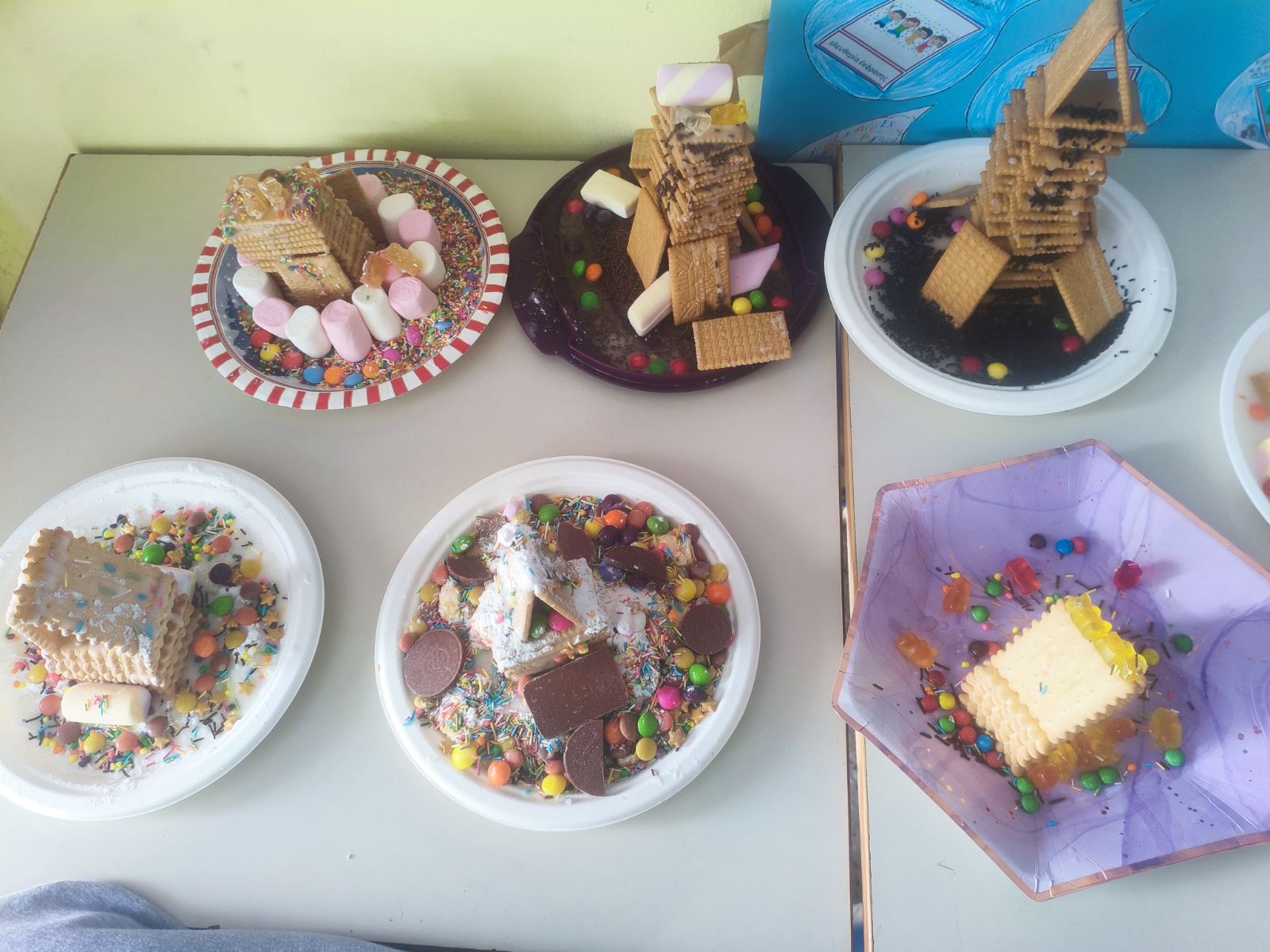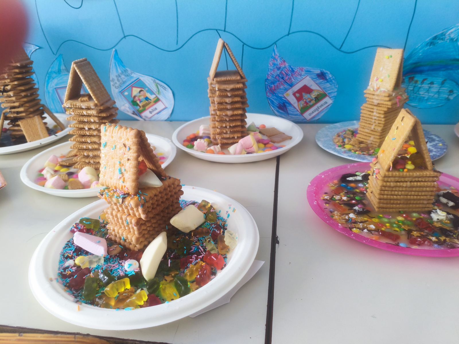 Με απλά υλικά, όπως μπισκότα και γλυκίσματα, και με οδηγό τη φαντασία και τη συνεργασία, τα παιδιά δημιούργησαν μοναδικές κατασκευές, βιώνοντας τη χαρά της δημιουργίας και το πνεύμα των Χριστουγέννων.